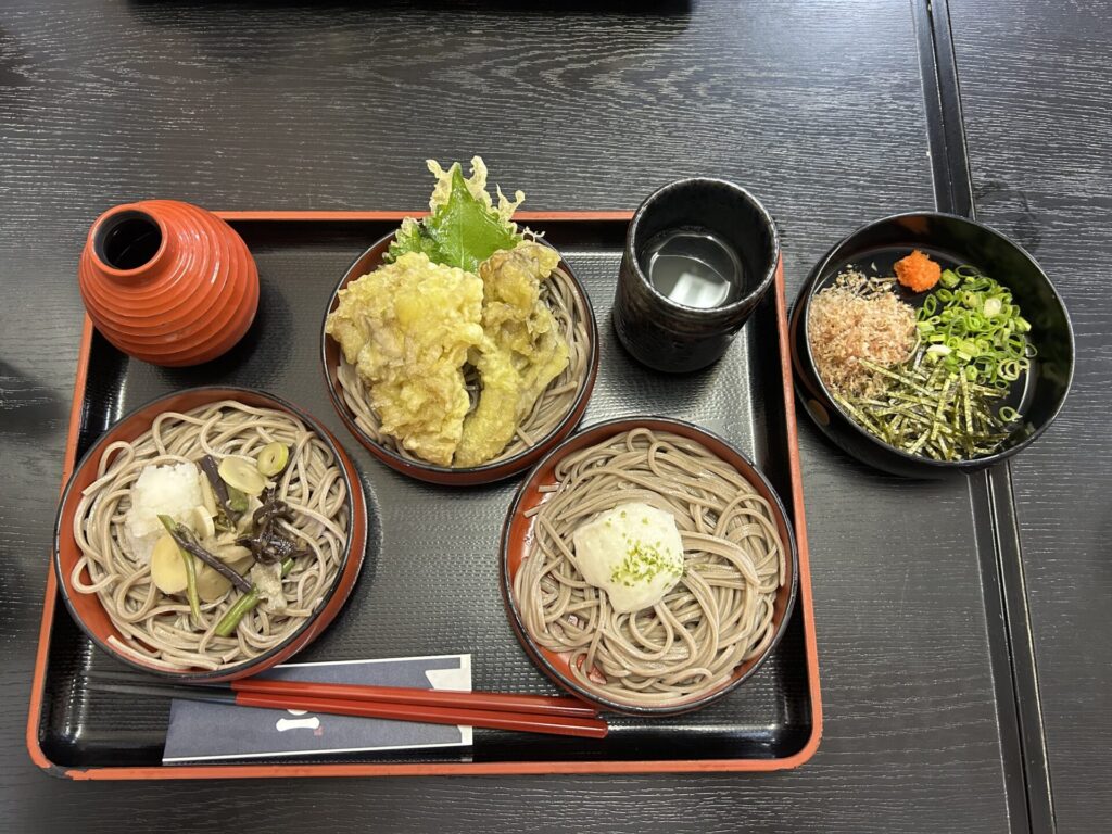 一畑電車の出雲大社駅で荷物を預け、まずは出雲そばで腹ごしらえ。観光案内所で当初調べていた「一福」という蕎麦屋さんの場所を確認し向いました。美味しい天ぷらと出雲そばで、お腹を満たすことができました。
