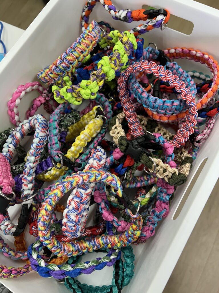 犬のお世話の他に、首輪やおもちゃなどを作る活動も実施しております。とても綺麗な素晴らしい首輪を作っていました。将来的には、これも生産活動の一部となるんでしょうね。 それと広大な敷地がありますので、犬のご飯作りなども計画しているようです。これからが楽しみですね。初めてここの事業所へお邪魔したときは、何もなくて殺風景な建屋でしたが、今はとても賑やかな事業所となっていました。指定申請を担当させていただいて、良かったですね。